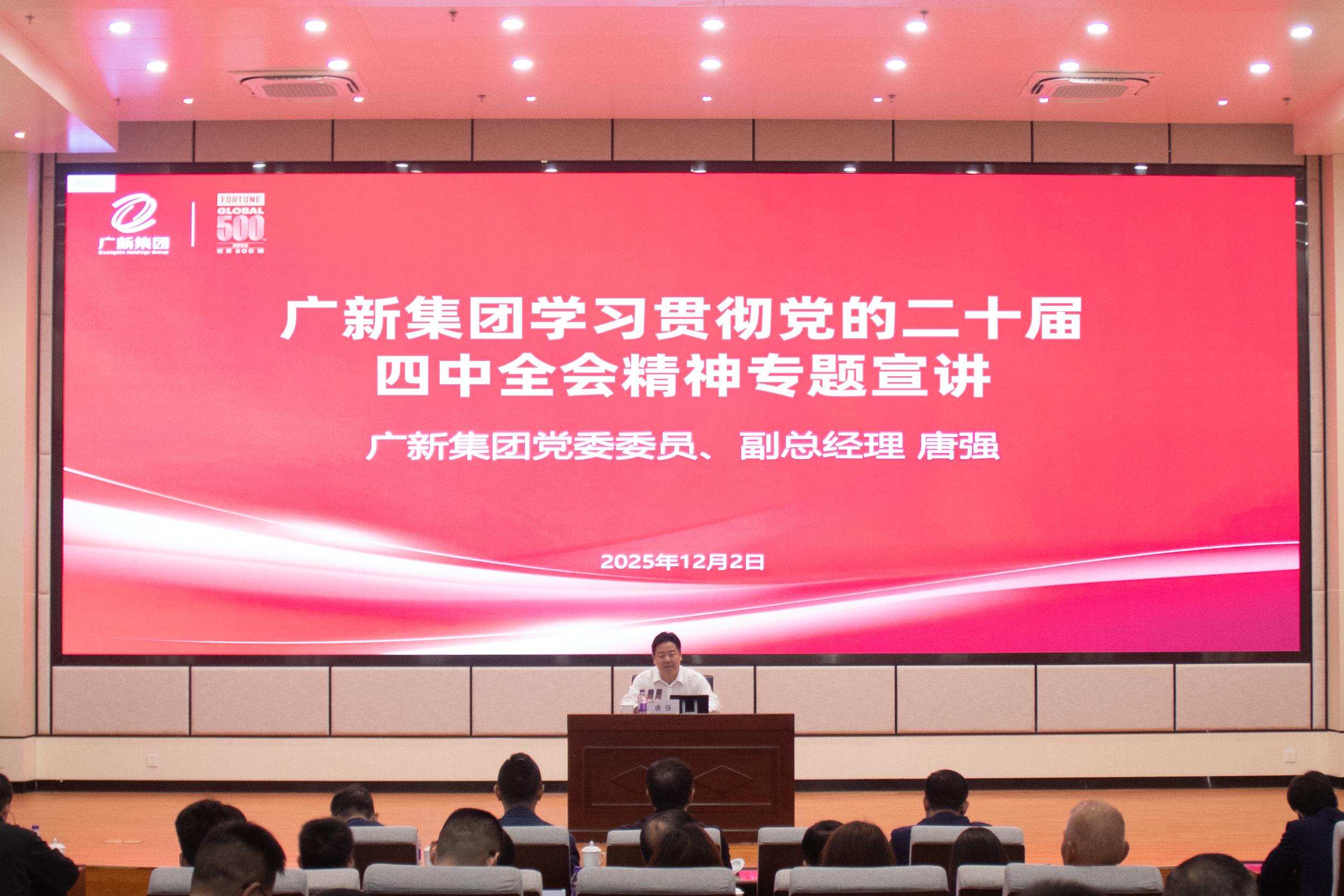 廣新集團黨委委員、副總經(jīng)理唐強在佛塑科技專題宣講黨的二十屆四中全會精神
